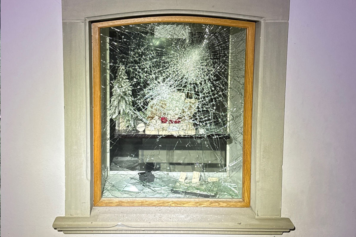 Trotz massiver Gewalt blieb das Sicherheitsglas intakt. (Bildquelle: Kantonspolizei Appenzell-Innerrhoden)