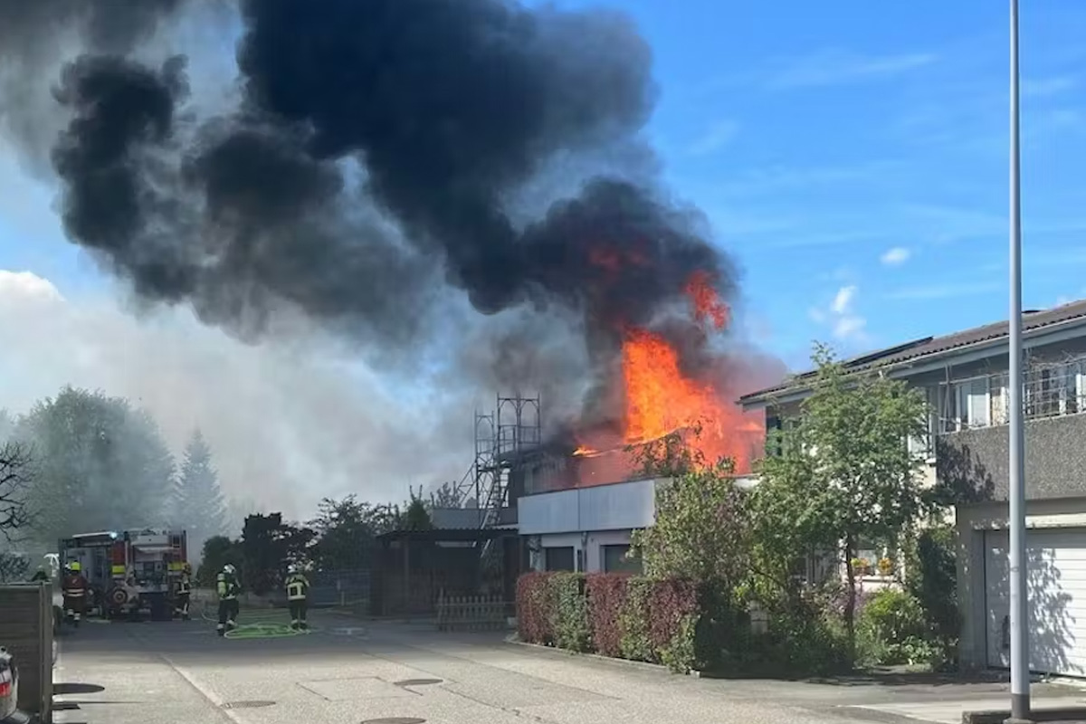 Beim Eintreffen der Einsatzkräfte stand das Gebäude bereits vollständig in Flammen. Nach ersten Erkenntnissen brach das Feuer im angebauten Wintergarten aus und griff anschliessend auf das gesamte Wohnhaus über.