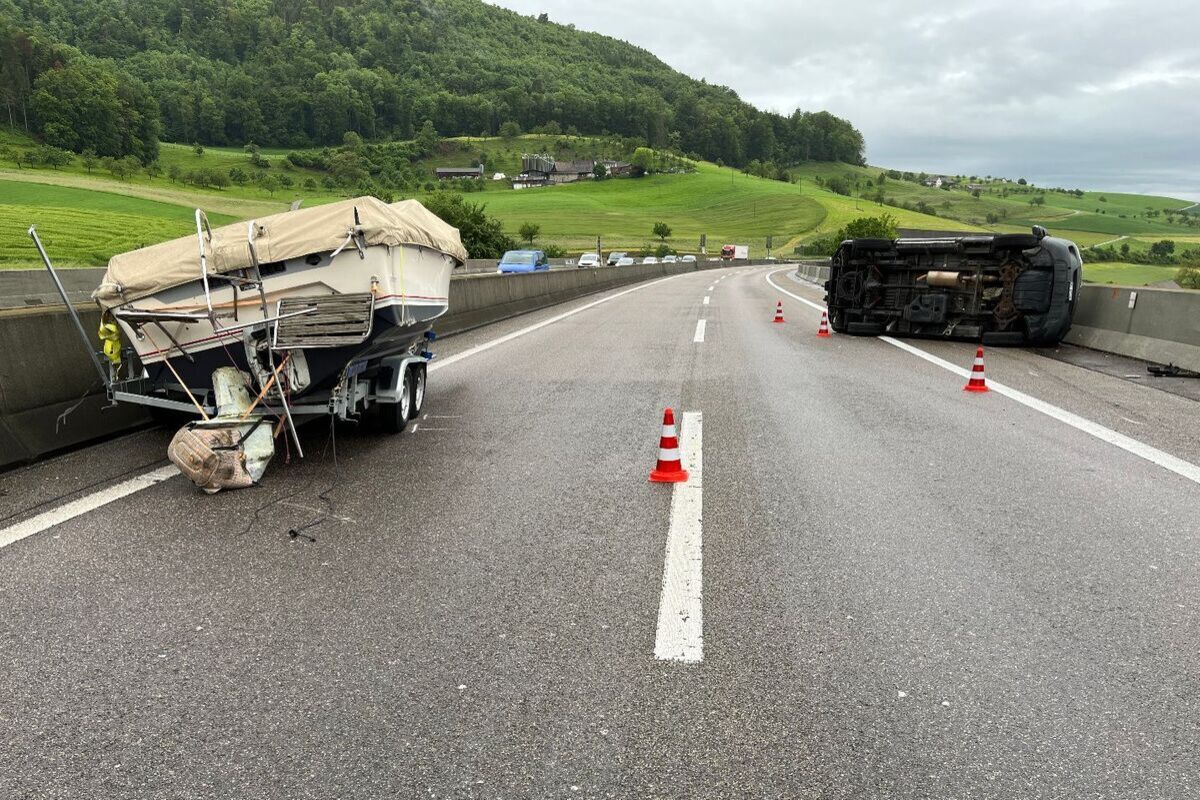 Der Sachentransportanhänger, auf welchem sich ein Sportboot befand, kippte auf die rechte Seite und kollidierte mit der rechtsseitigen Leitplanke. Dadurch drehte sich der Lieferwagen, kippte auf die linke Seite und kollidierte ebenfalls mit der rechtsseitigen Leitplanke. Der Lieferwagen kam auf der linken Seite liegend zum Stillstand.