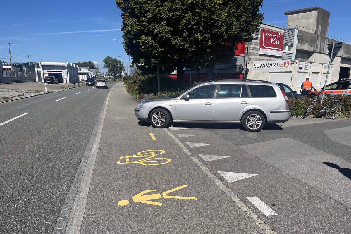 Ein 28-jähriger Mann fuhr mit seinem Auto von einem Firmenareal zur Einmündung in die Rosenbergsaustrasse, wo er aufgrund des Verkehrs bis zum Stillstand anhielt. Gleichzeitig fuhr ein 80-jähriger Mann mit seinem E-Bike auf dem Veloweg in Richtung Widnau.