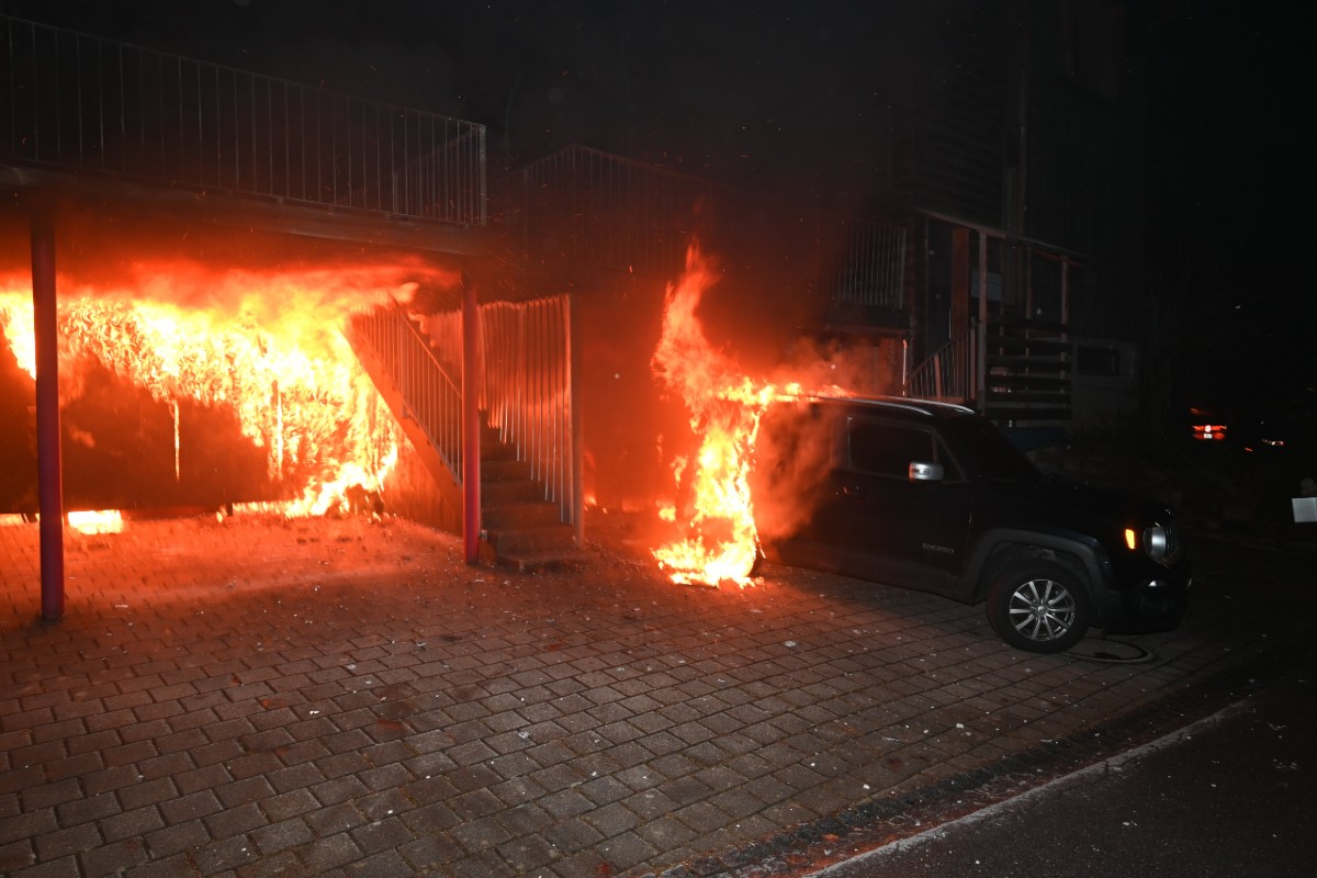 Am Sonntag (17.12.2023), kurz vor 22 Uhr, ist an der Büchelstrasse ein Carport und ein Auto in Brand geraten. Verletzt wurde niemand. Es entstand Sachschaden.