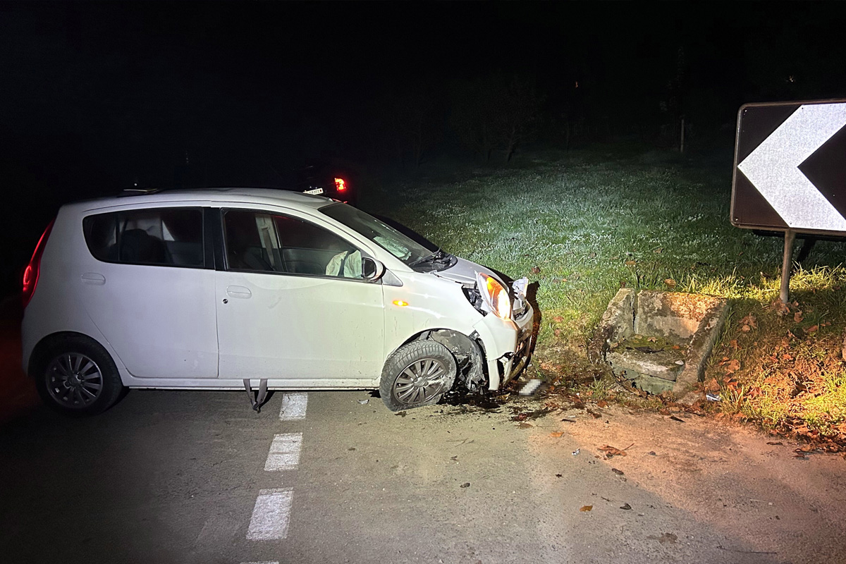 Mutmasslich aufgrund nicht angepasster Geschwindigkeit verlor der Fahrer eines Kleinwagens auf dieser Nebenstrecke die Kontrolle über den Wagen. Dieser kam von der Fahrbahn ab und prallte heftig gegen die steinerne Einfassung eines Ablaufschachtes.