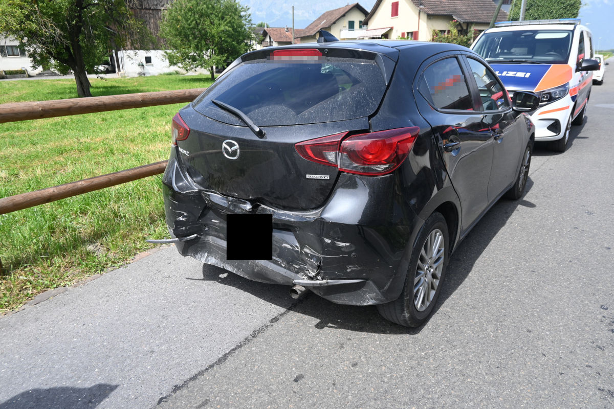 Um 12.20 Uhr fuhr ein Mann auf der Zollstrasse in Schaan in Richtung Dorfzentrum. Auf der Höhe der Einmündung „Im Rösle“ kam es zur Auffahrkollision mit dem Personenwagen einer Frau, der sich an der hintersten Stelle einer stillstehenden Fahrzeugkolonne befand.