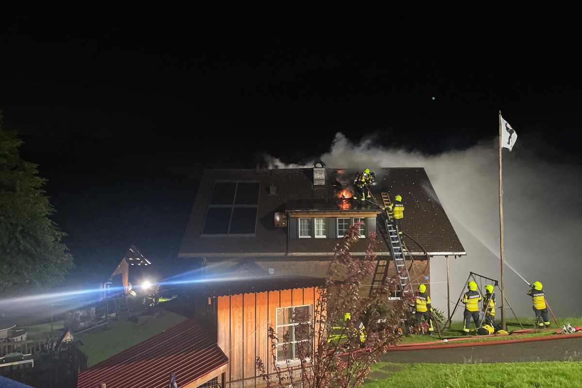 Am Montagabend (27.06.2022) um 22.00 Uhr bemerkten die Bewohner den Brand im Dachstock ihres Hauses an der Erstböhlstrasse. Sofort wurden die Feuerwehren von Schwende, Rüte und Appenzell alarmiert.