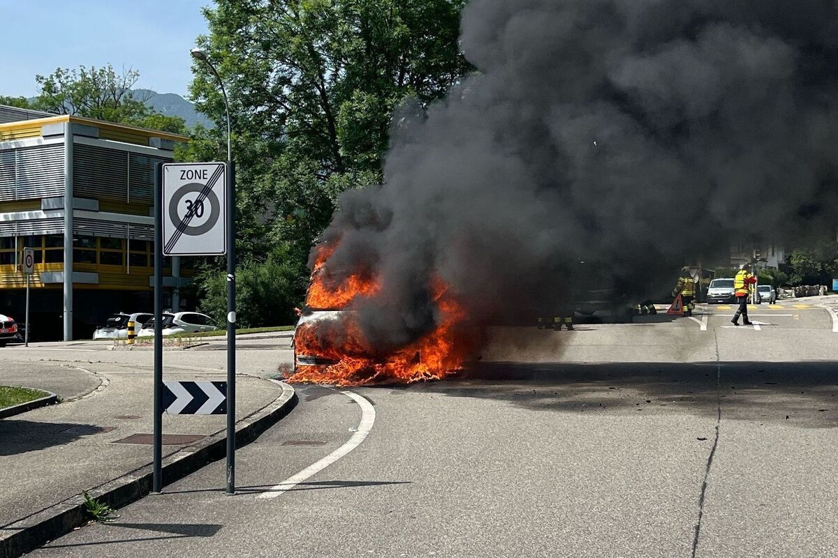 Am Donnerstagnachmittag geriet ein Auto auf der Wildbachstrasse in Solothurn in Brand und brannte vollständig aus. Verletzt wurde niemand.