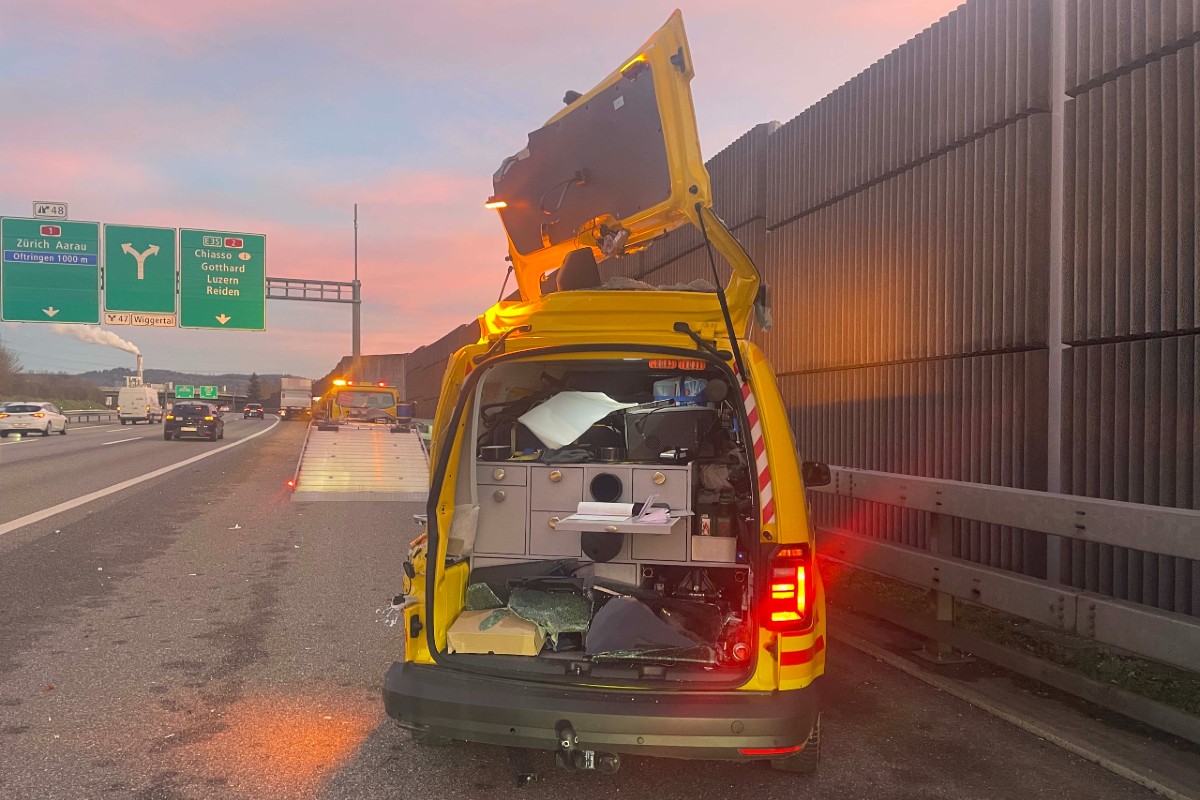 Am Mittwochnachmittag geriet ein Lastwagen auf den Pannenstreifen und kollidierte dort mit einem stehenden TCS-Patrouillenfahrzeug. Nur durch grosses Glück wurde niemand verletzt. Es entstand grosser Sachschaden.