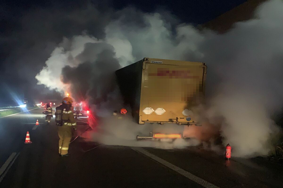 Autobahn A1/Neuendorf SO - Anhänger eines Lastwagens brennt auf der A1