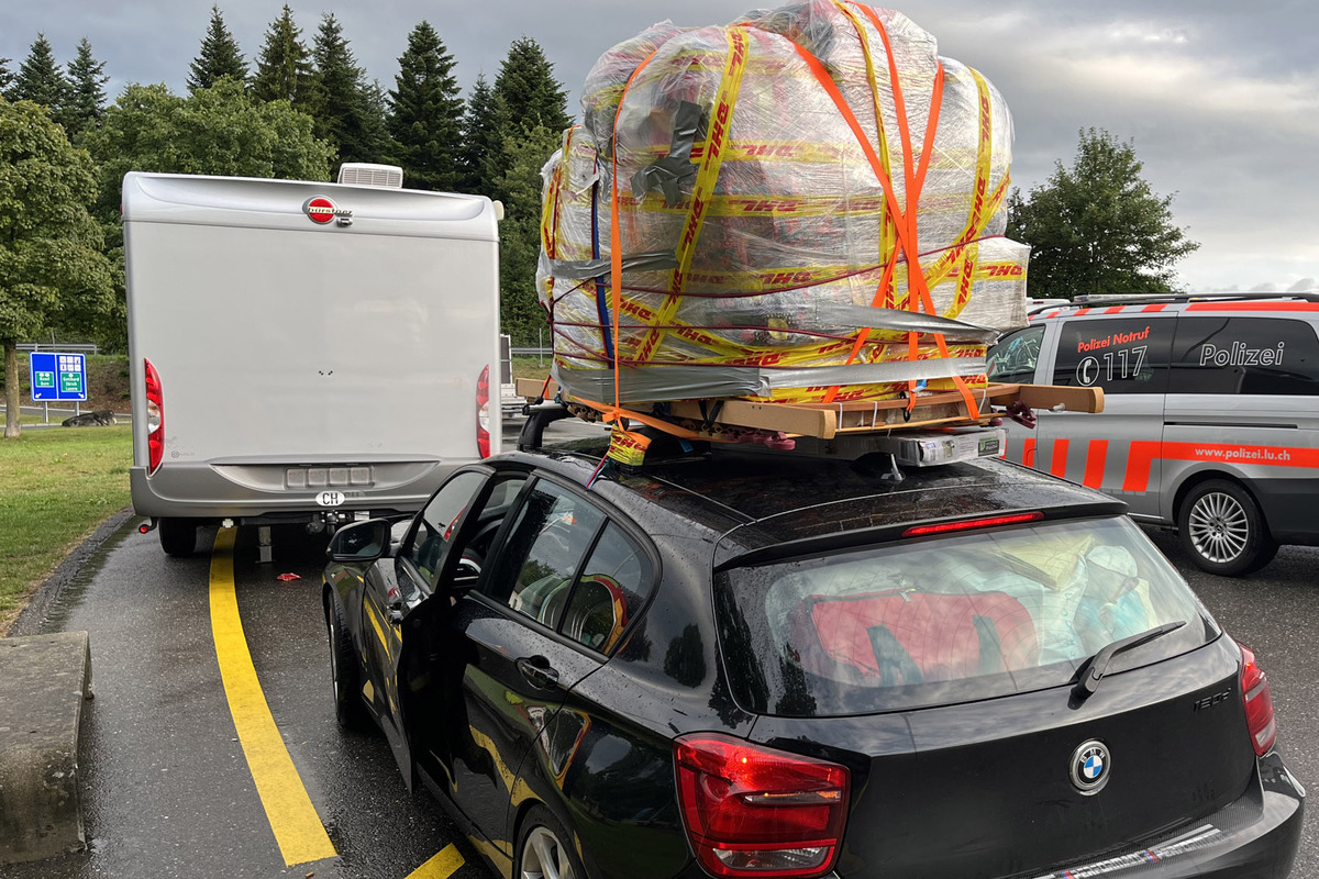 Die Luzerner Polizei stoppte am Sonntagmorgen (16. Juli 2023 / vor 07.30 Uhr) auf der Autobahn A2 in Fahrtrichtung Norden einen belgischen Lenker, welcher sein Auto komplett überladen hatte. Der Mann hatte die zugelassene Dachlast um 145kg überschritten.