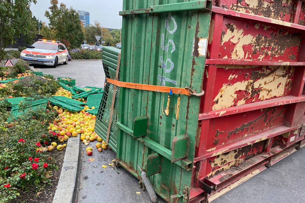 Die Äpfel mussten von Hand aufgelesen und der umgekippte Anhänger durch ein privates Abschleppunternehmen geborgen werden. Durch den Unfall kam es rund um den Kreisel zu Verkehrsbehinderungen. Eine Umleitung wurde eingerichtet.