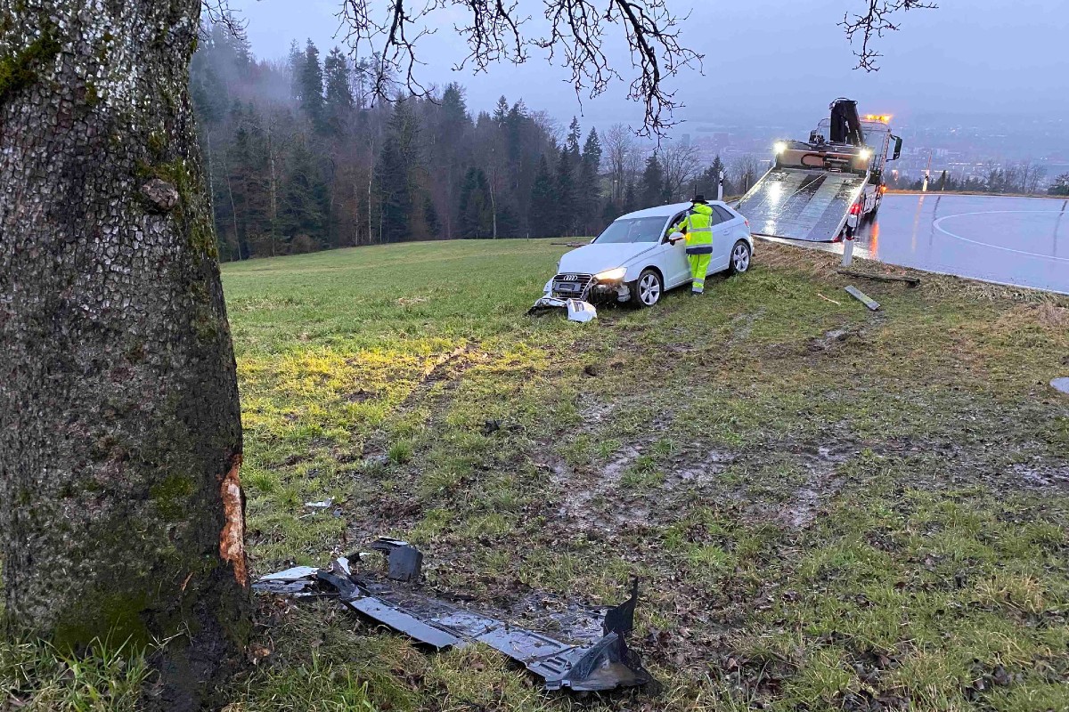 Dieses durchquerte eine Wiese und prallte in einen Baum. Die 25-jährige Frau verletzte sich bei dem Selbstunfall nur leicht. Ihr Auto wurde jedoch stark beschädigt. Es musste von einem privaten Abschleppunternehmen aus dem Wiesland gezogen und abtransportiert werden. Der Sachschaden beläuft sich auf rund 10'000 Franken.