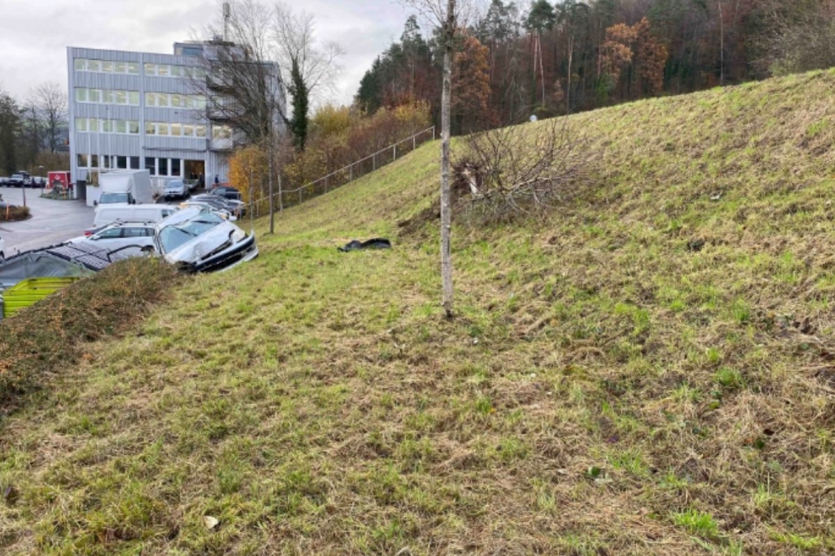 Ein Auto ist von der Strasse abgekommen, in einen Baum geprallt und nach einem Überschlag zum Stillstand gekommen. Die beiden Insassen hatten einen Schutzengel und konnten das Fahrzeug unverletzt verlassen.