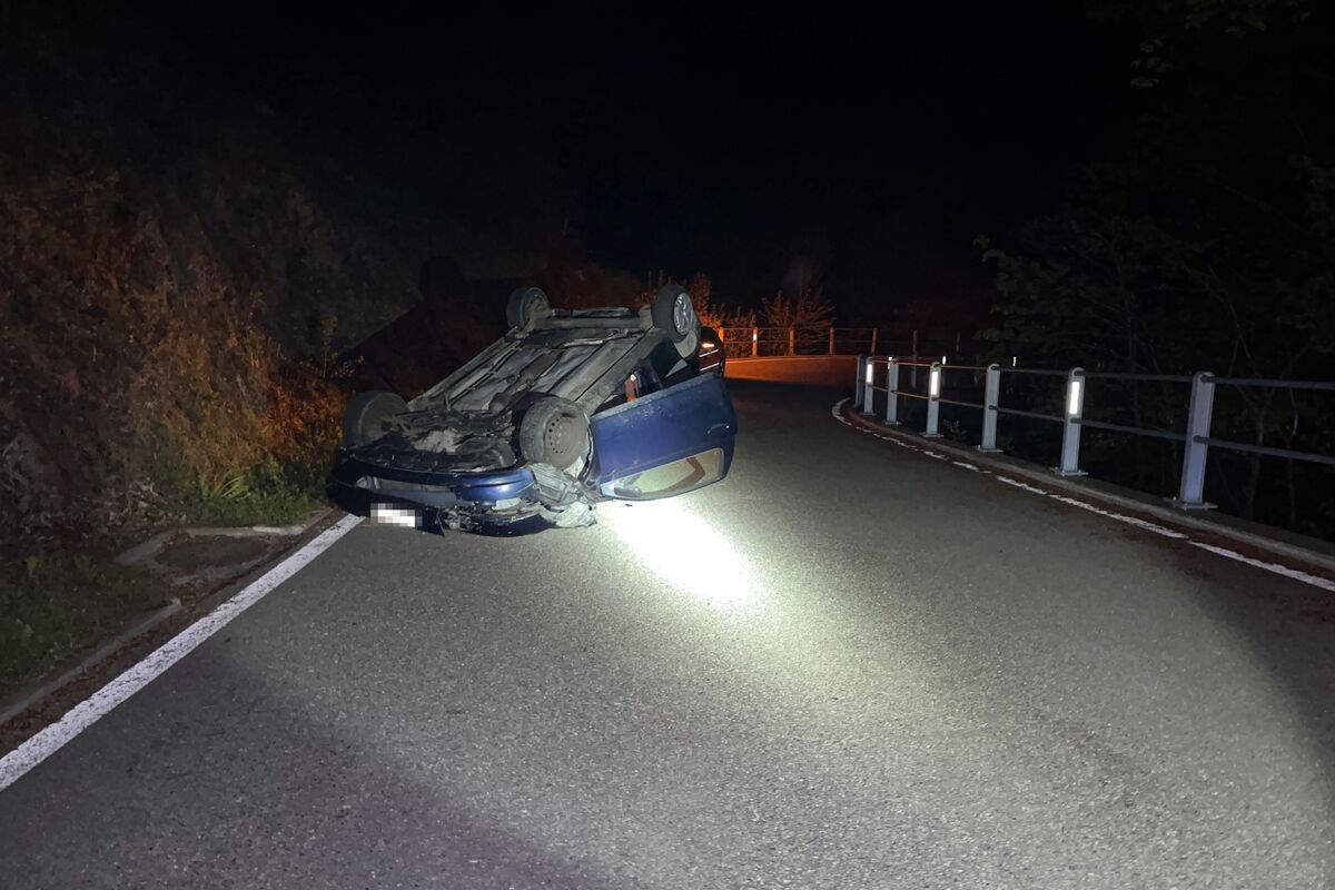 Heute, 19.05.2023, kam es zu einem Selbstunfall auf der Balmbergstrasse. Im Bereich einer Linkskurve verlor der alkoholisierter Lenker die Kontrolle über das Fahrzeug und überschlug sich. Das Auto kam auf dem Dach liegend zum Stillstand.