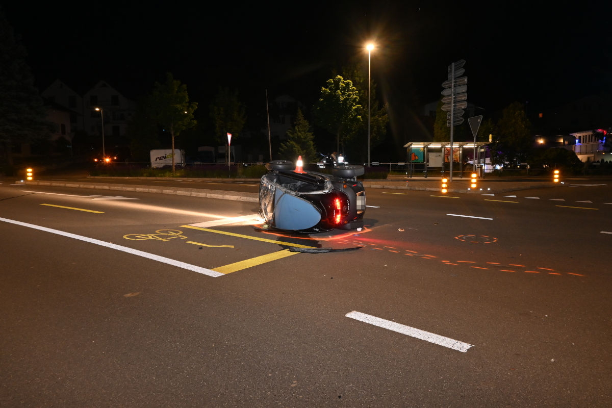 Das Kleinmotorfahrzeug kippte beim Unfall auf die Seite. (Bildquelle: Landespolizei Fürstentum Liechtenstein)