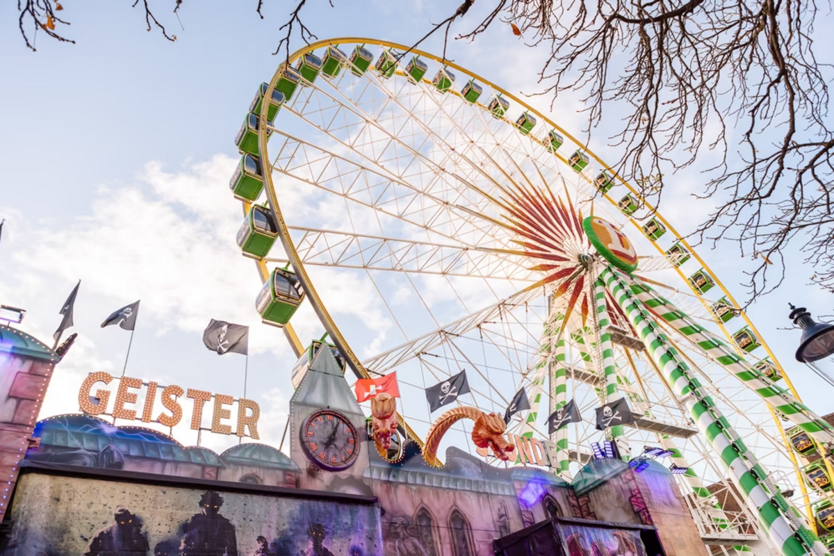 Riesenrad und Geisterbahn auf dem Münsterplatz (Bildquelle: Kanton Basel-Stadt)