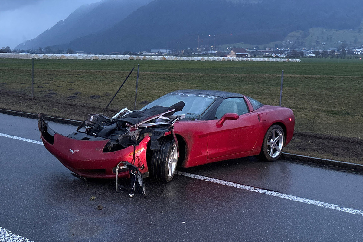 Benken SG – Fahrerin (29) prallt mit Corvette in Leitplanke