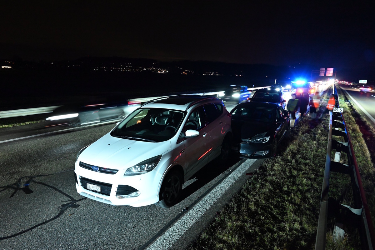 In der Folge kam es zu Zusammenstössen zwischen den beteiligten Autos. Der 42-jährige Fahrer des zweithintersten Autos sowie eine 62-jährige Mitfahrerin in einem anderen Auto wurden leicht verletzt.
