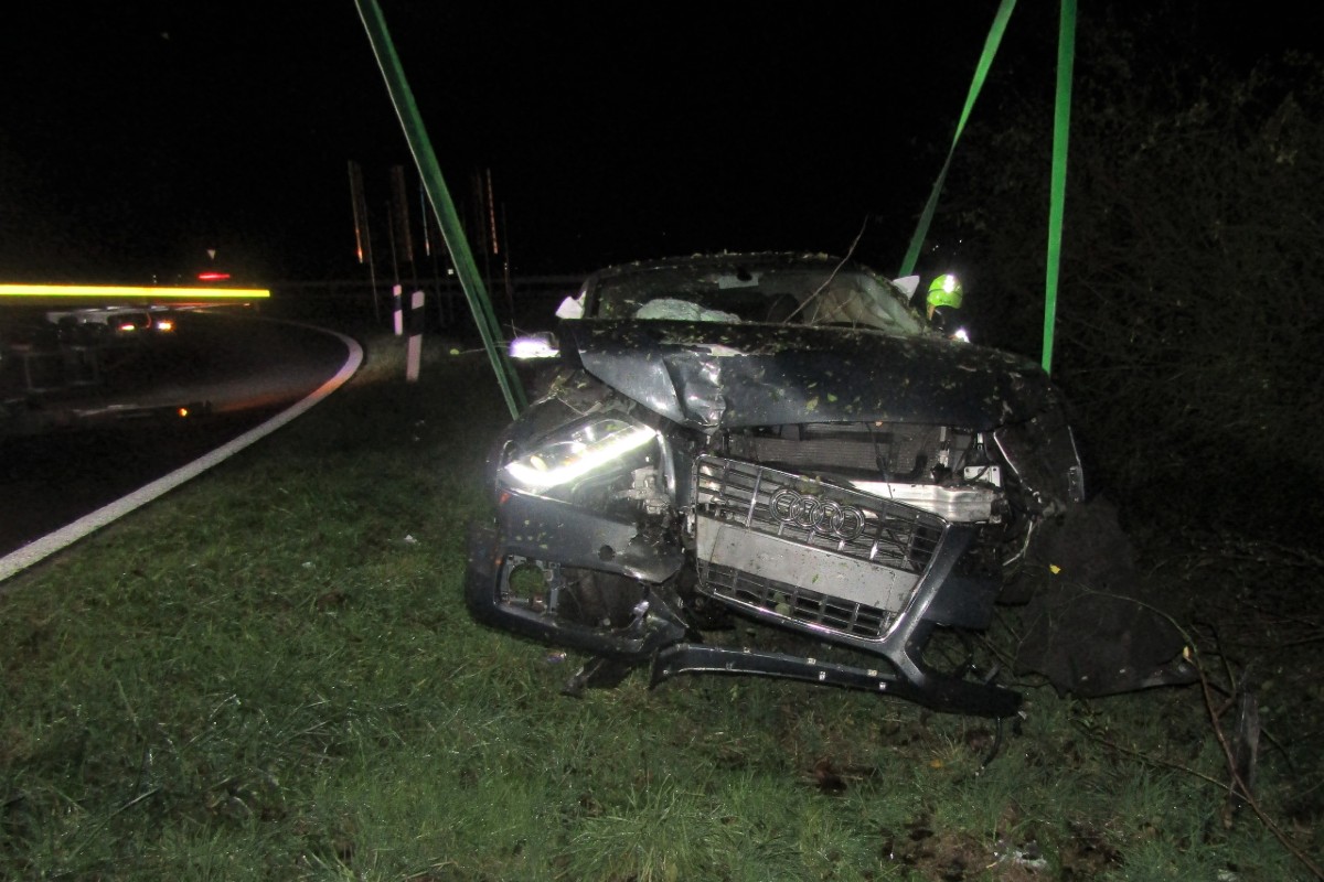 In der Rechtskurve verlor der 43-Jährige aus noch ungeklärten Gründen die Kontrolle über sein Fahrzeug. Dieses geriet von der Fahrbahn und kam im angrenzenden Waldabschnitt zum Stillstand.