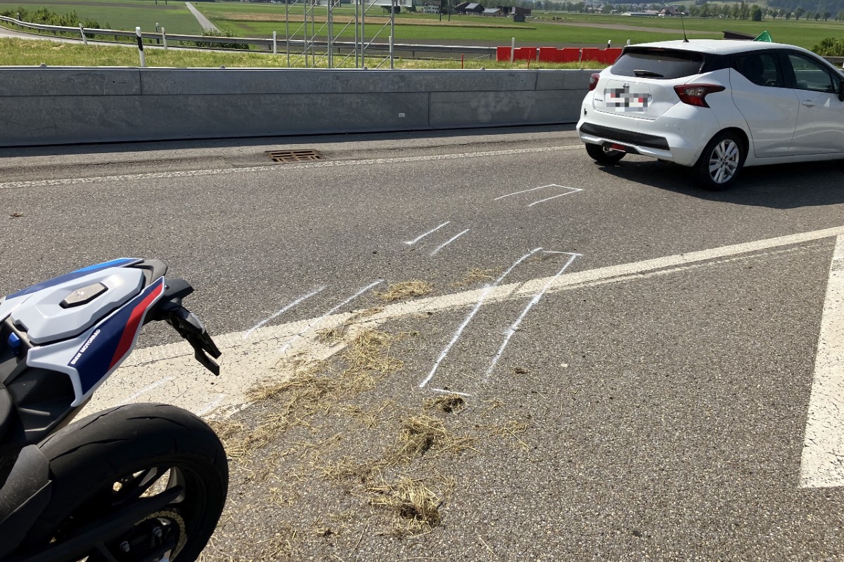Der 51-jährige Lenker eines Motorrads war auf der Autobahn A3 in Fahrtrichtung Zürich unterwegs und verliess diese beim Autobahnkreuz Reichenburg, um in Richtung Tuggen SZ weiterzufahren. Mutmasslich aufgrund überhöhter Geschwindigkeit verlor er in der Kurve der Ausfahrt die Herrschaft über sein Motorrad und kam von der Strasse ab. Dabei rutschte er über eine Wiese und kam auf der Fahrbahn der Autobahn A15 zum Stillstand.