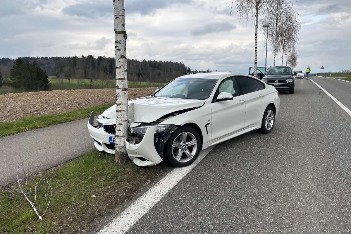 Vom Navigationsgerät abgelenkt übersah ein Automobilist ein Bremsmanöver, wich aus und prallte gegen einen Baum. Am BMW entstand Totalschaden.