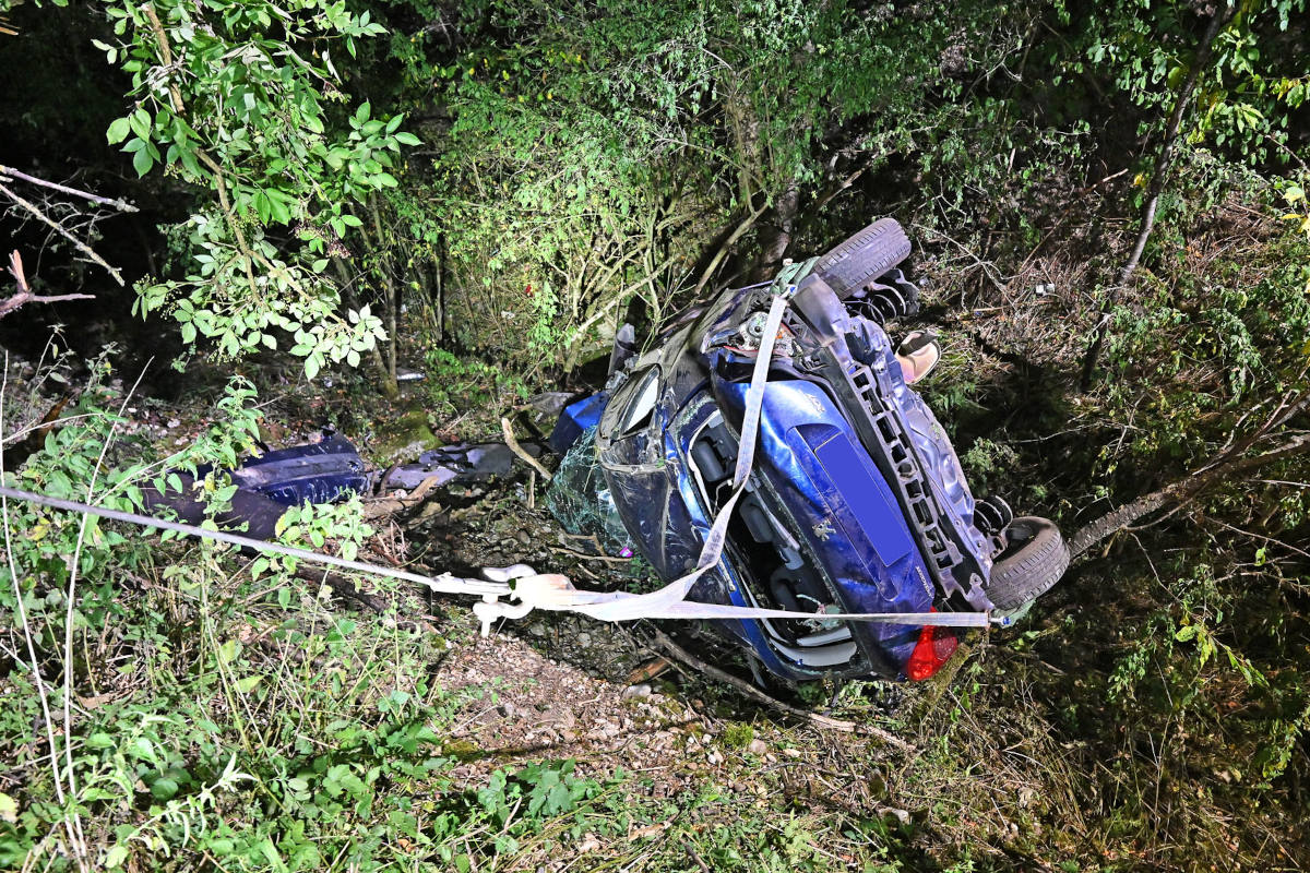 Eine 20-jährige Frau fuhr mit ihrem Auto in der Nacht auf Mittwoch (20.07.2022) zu einer unbekannten Zeit in Beringen auf der Trasadingerstrasse in Richtung Neunkirch. Kurz vor Guntmadingen kam die Deutsche - aus noch unbekannten Gründen – mit ihrem Auto rechtsseitig von der Fahrbahn ab und fuhr damit in einen fünf Meter tiefen Graben, wobei sich der Personenwagen überschlug.