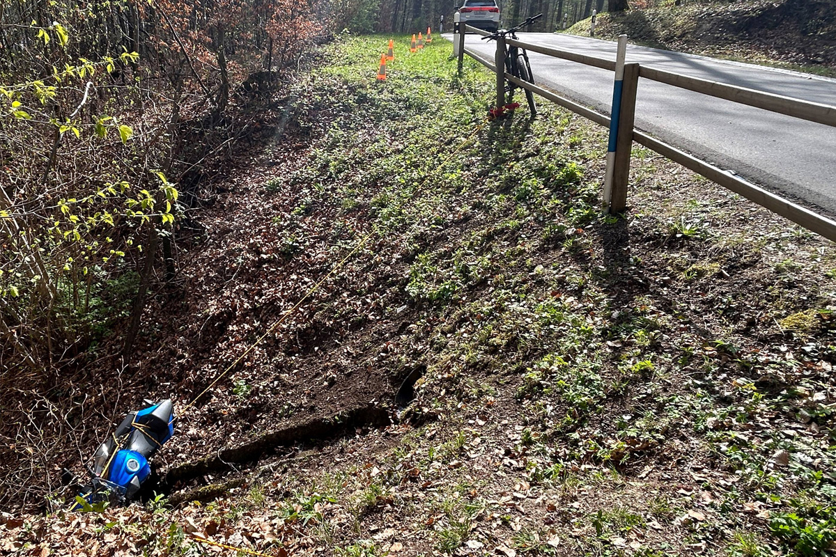 Die Motorrad-Fahrerin stürzte eine Böschung hinunter und wurde mittelschwer verletzt. (Bildquelle: Kantonspolizei Thurgau)