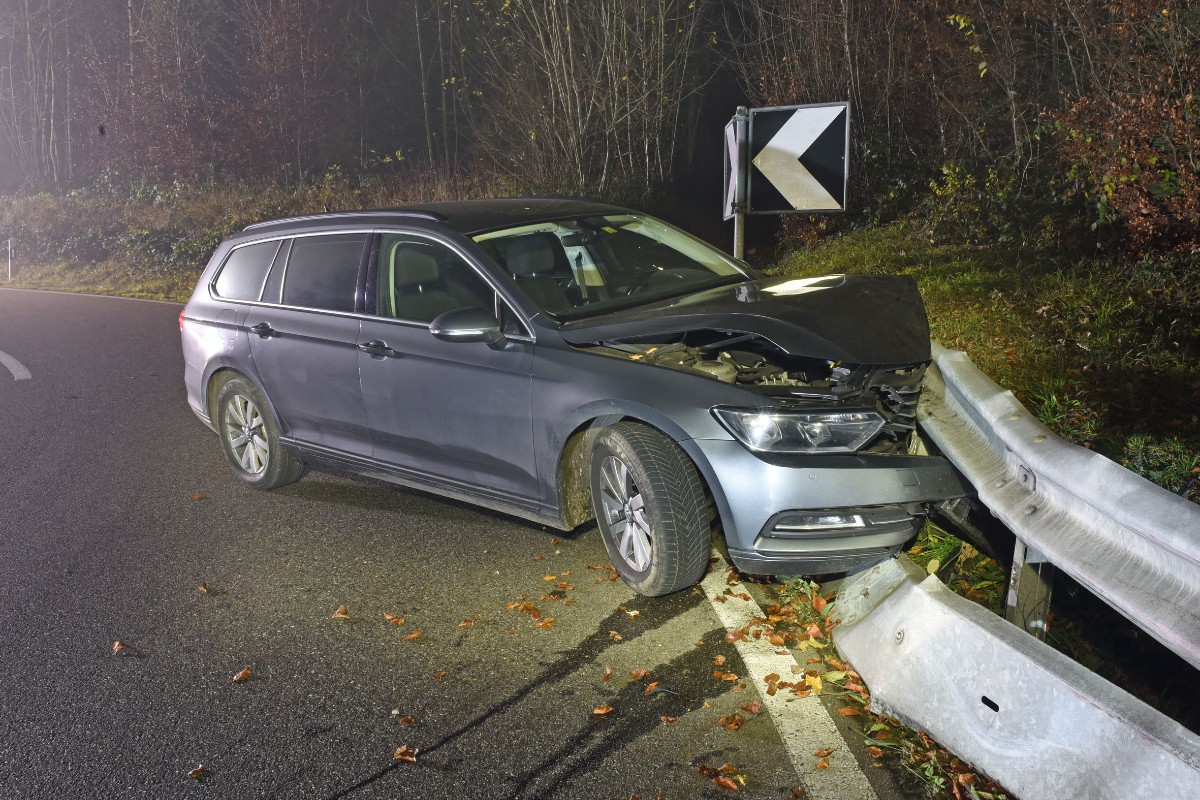 Am heutigen Donnerstag, 25. November 2021, kurz vor 01:30 Uhr wurde der Polizei gemeldet, dass auf der Kantonsstrasse in Schwarzenbach ein Auto gegen die Leitplanke geprallt sei.