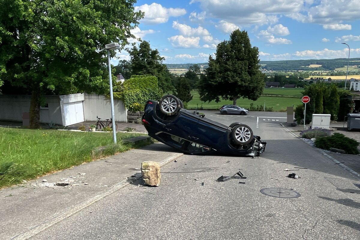 In der Folge überschlug sich das Fahrzeug, welches schliesslich auf dem Dach liegend zum Stillstand kam. Nach ersten Erkenntnissen blieben die Lenkerin und zwei Mitfahrende leicht verletzt. Ein weiterer Mitfahrer blieb unverletzt. Das Unfallauto erlitt Totalschaden.