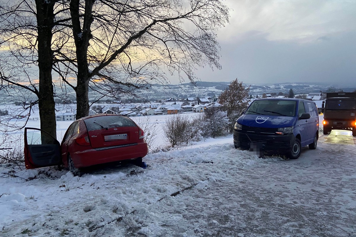 vereisten Fahrbahn aus. Dadurch geriet der Kia auf die