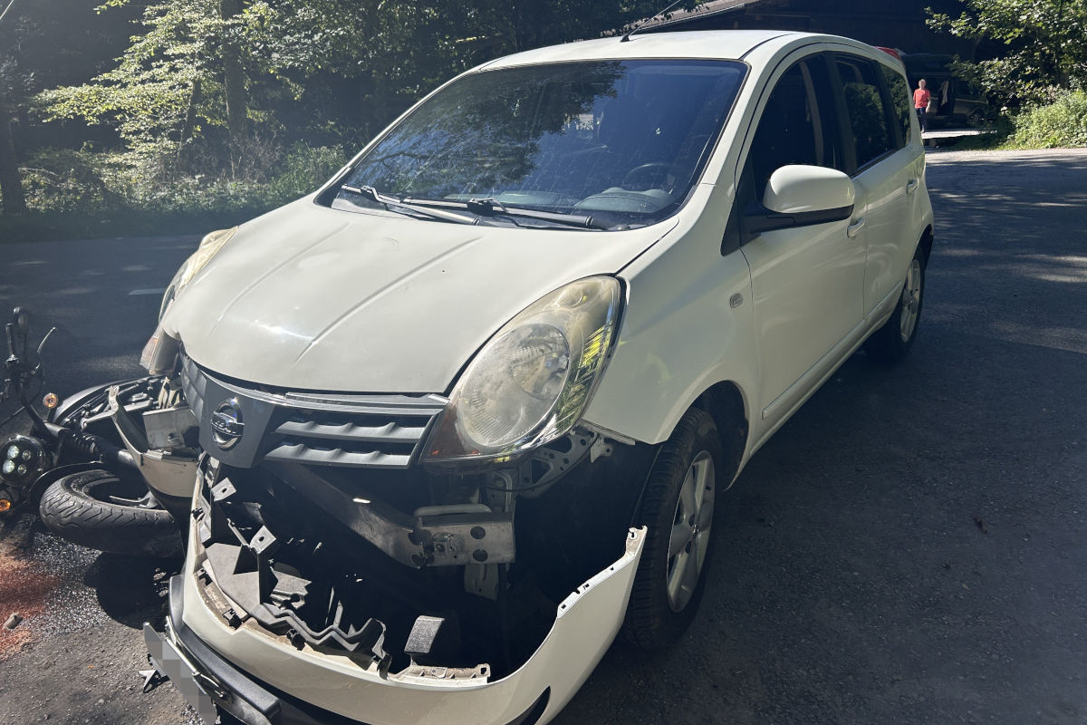 Zeitgleich nahte aus entgegenkommender Richtung ein Motorrad. Folglich kam es beim Abbiegemanöver zur Kollision zwischen den beiden Fahrzeugen.