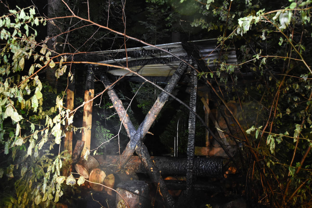 Beim Eintreffen der alarmierten Feuerwehr und der Polizei stand eine Scheiterbeige, ein Holzunterstand und ein kleiner Teil des angrenzenden Waldes in Flammen. Die zuständige Feuerwehr war mit rund 15 Personen vor Ort und brachte den Brand unter Kontrolle.