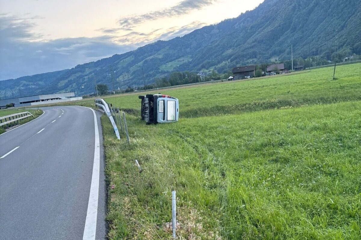 Ein 24-jähriger Personenwagenlenker fuhr von Oberurnen in Richtung Bilten. Aus Unaufmerksamkeit kam er rechts von der Strasse ab, kollidierte mit der Leitplanke, bevor er mit seinem Fahrzeug auf der Seite liegend im Wiesland zum Stillstand kam. Verletzt wurde niemand. Am Auto und der Strasseneinrichtung entstand Sachschaden.