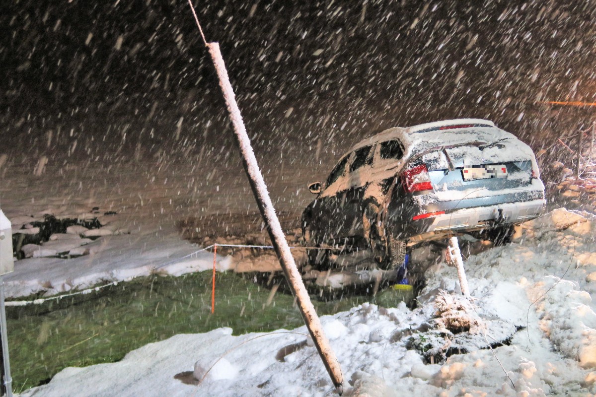 In Bilten GL verunfallte letzte Nacht ein Autolenker im Schnee. (Bildquelle: Kantonspolizei Glarus)