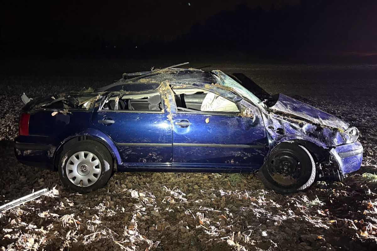 In einer Rechtskurve verlor er die Kontrolle über den Wagen und kam von der Fahrbahn ab. Dabei überschlug sich dieser und kam wieder auf den Rädern im angrenzenden Feld zum Stillstand.