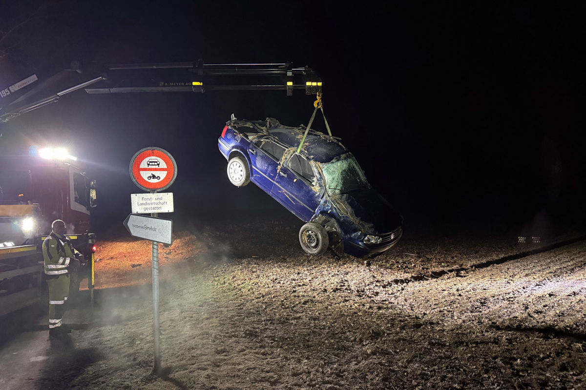 Heute Nacht, am 5. Februar 2026, kam es in Birrhard zu einem Unfall. Ein Neulenker kam von der Fahrbahn ab, das Auto erlitt Totalschaden. Der Lenker wurde dabei verletzt.