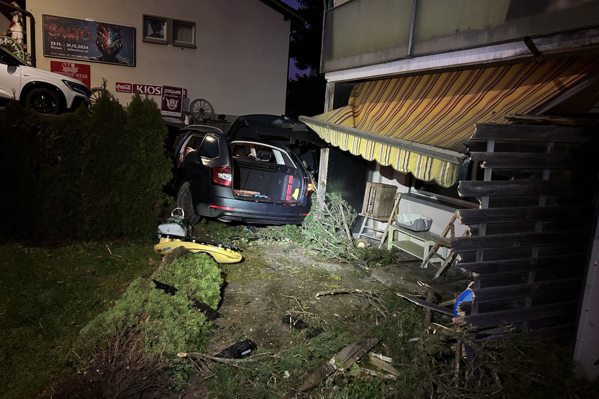 Verletzt wurde glücklicherweise niemand. Am Auto sowie auf dem Sitzplatz entstand jedoch beträchtlicher Schaden. Der Abschleppdienst musste den Unfallwagen mit einem Kran aus dem Vorgarten bergen.