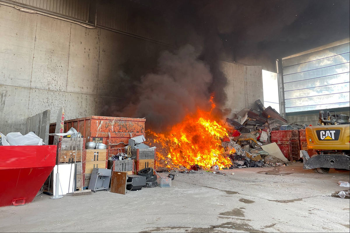 Brandausbruch im Recyclinglager erfordert Feuerwehreinsatz (Bildquelle: Polizei Basel-Landschaft)