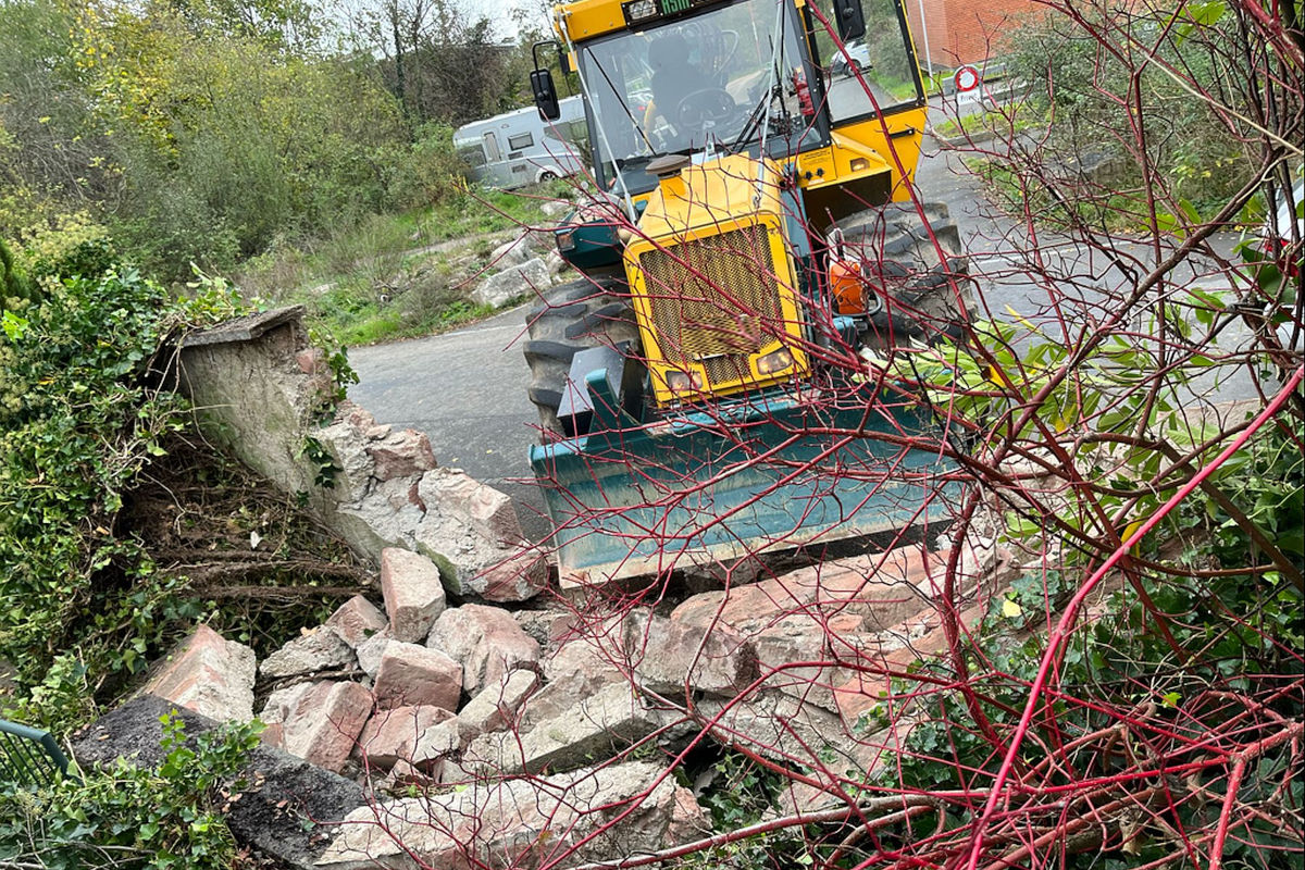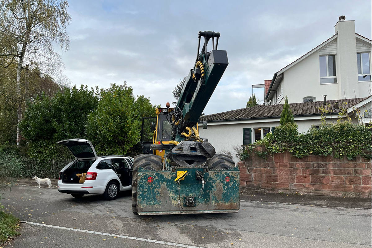 Birsfelden BL – Forstschlepper kollidiert mit Personenwagen und Gartenmauer