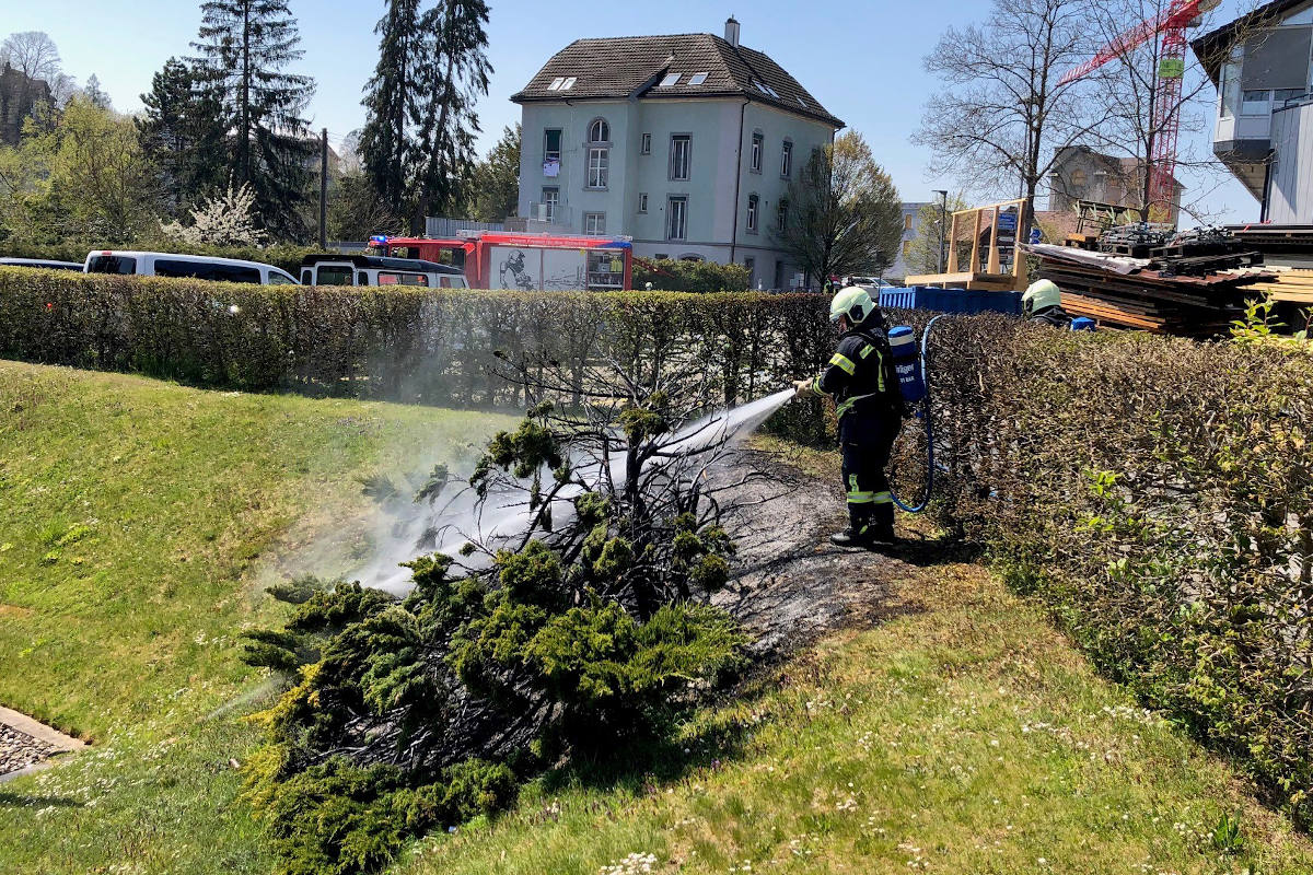 Kurz vor 13.30 Uhr ging bei der Kantonalen Notrufzentrale die Meldung ein, dass am Bruggwiesenweg ein Feuer ausgebrochen sei. Die Feuerwehr Bischofszell konnte drei Sträucher sowie rund zwei Meter Hecke, die in Brand geraten waren, rasch löschen. Verletzt wurde niemand, der Sachschaden ist mehrere hundert Franken hoch.