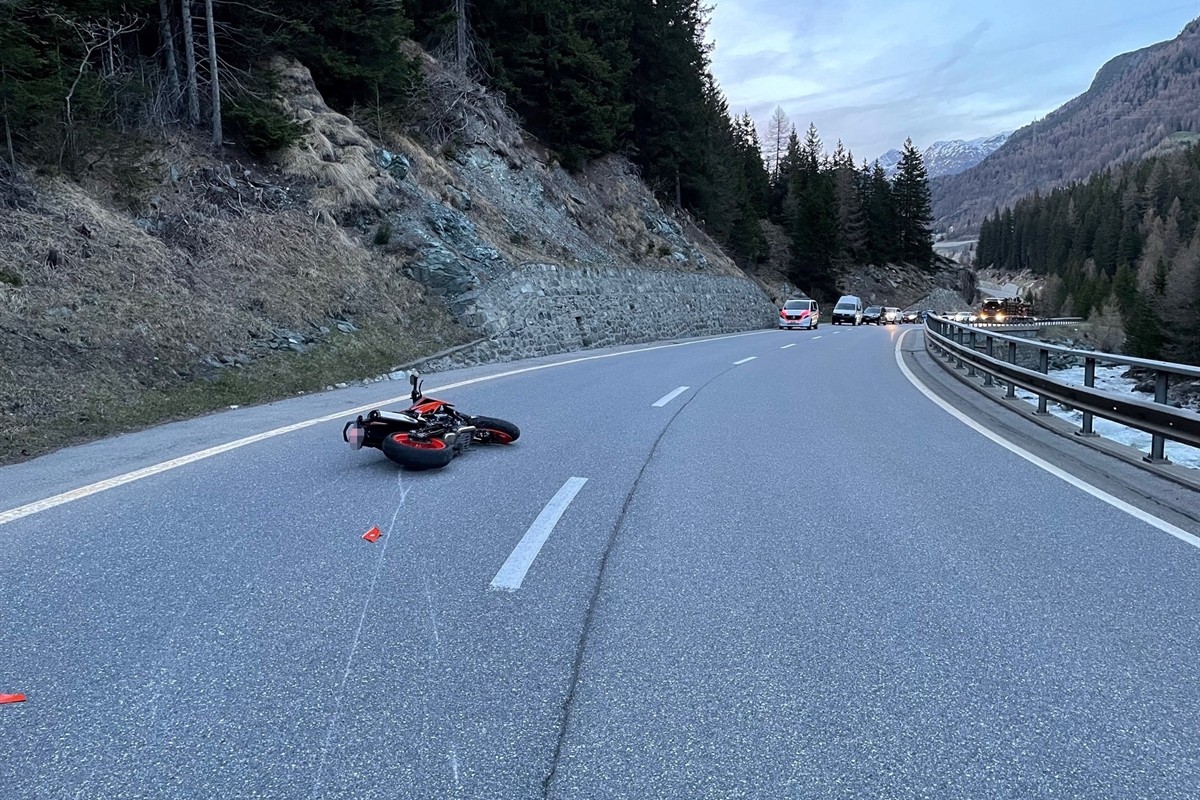 Der 20-Jährige fuhr gegen 20 Uhr mit seinem Motorrad von Bivio in Richtung Savognin. Eingangs einer langgezogenen Linkskurve kurz vor dem Stausee Lai da Marmorera geriet er zu weit nach rechts, kollidierte mit der Leitplanke und stürzte. Das Motorrad rutschte auf die Gegenfahrbahn, wo es zum Stillstand kam.