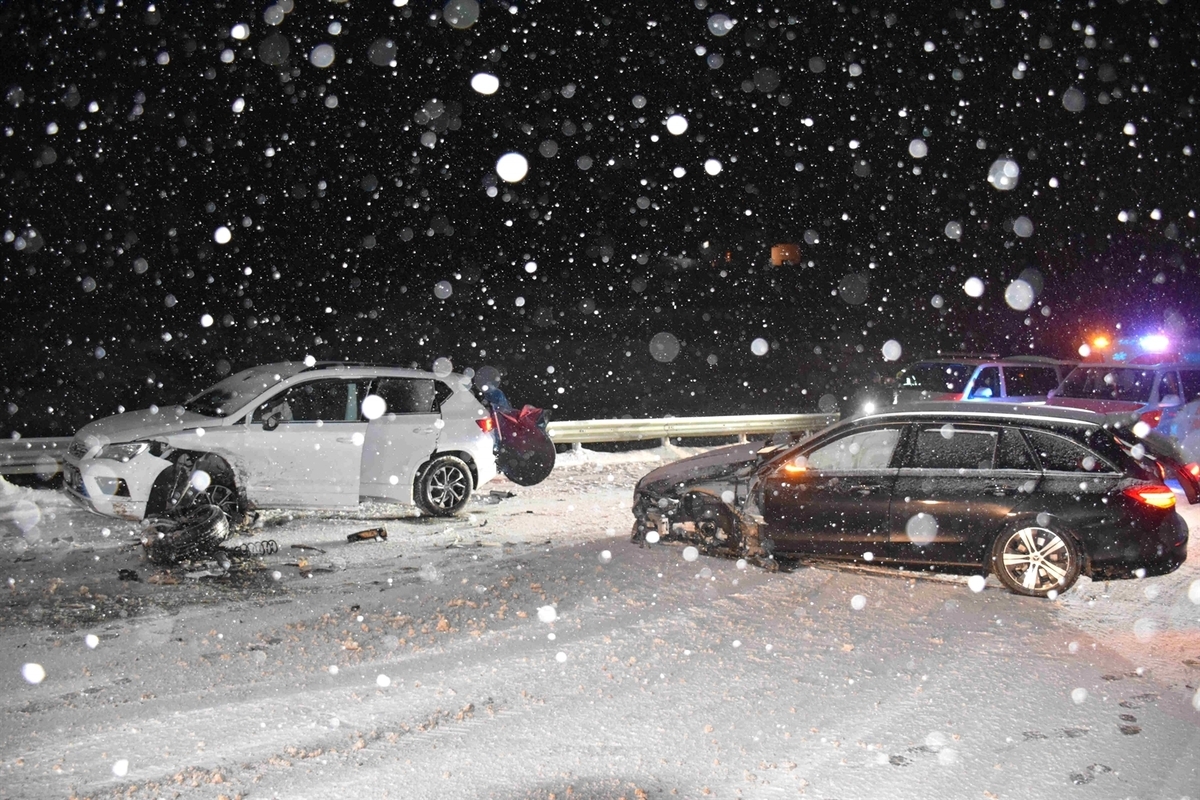 Bivio GR – Unfall auf schneebedeckter Fahrbahn
