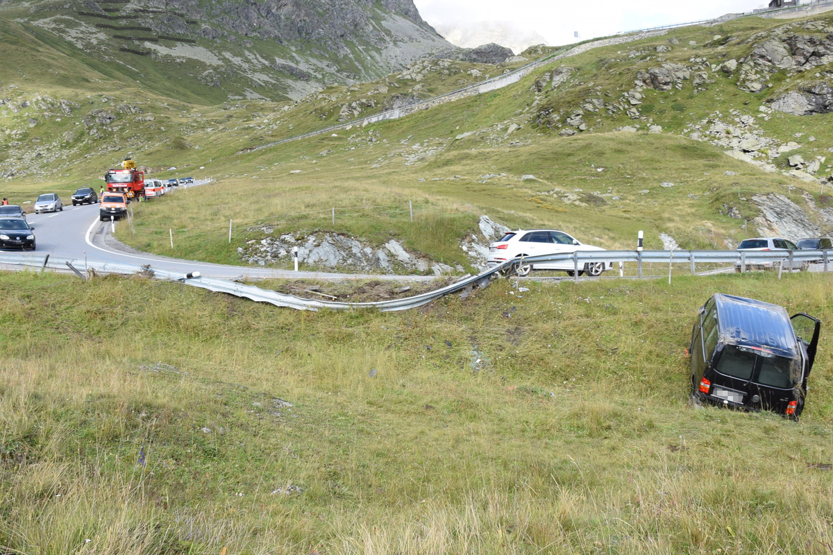 Ein 41-jähriger Automobilist fuhr kurz nach 16 Uhr mit einem Kleinbus vom Julier Hospiz talwärts in Richtung Bivio. Auf einer Geraden unterhalb La Veduta überholte er ein Wohnmobil. Nach Abschluss des Überholmanövers verlor er in der folgenden Linkskurve die Herrschaft über das Fahrzeug. Dabei kollidierte dieses mit der rechtsseitigen Leitplanke, durchschlug diese und überschlug sich einmal über die Böschung. Auf den Rädern stehend kam es neben der Strasse zum Stillstand.