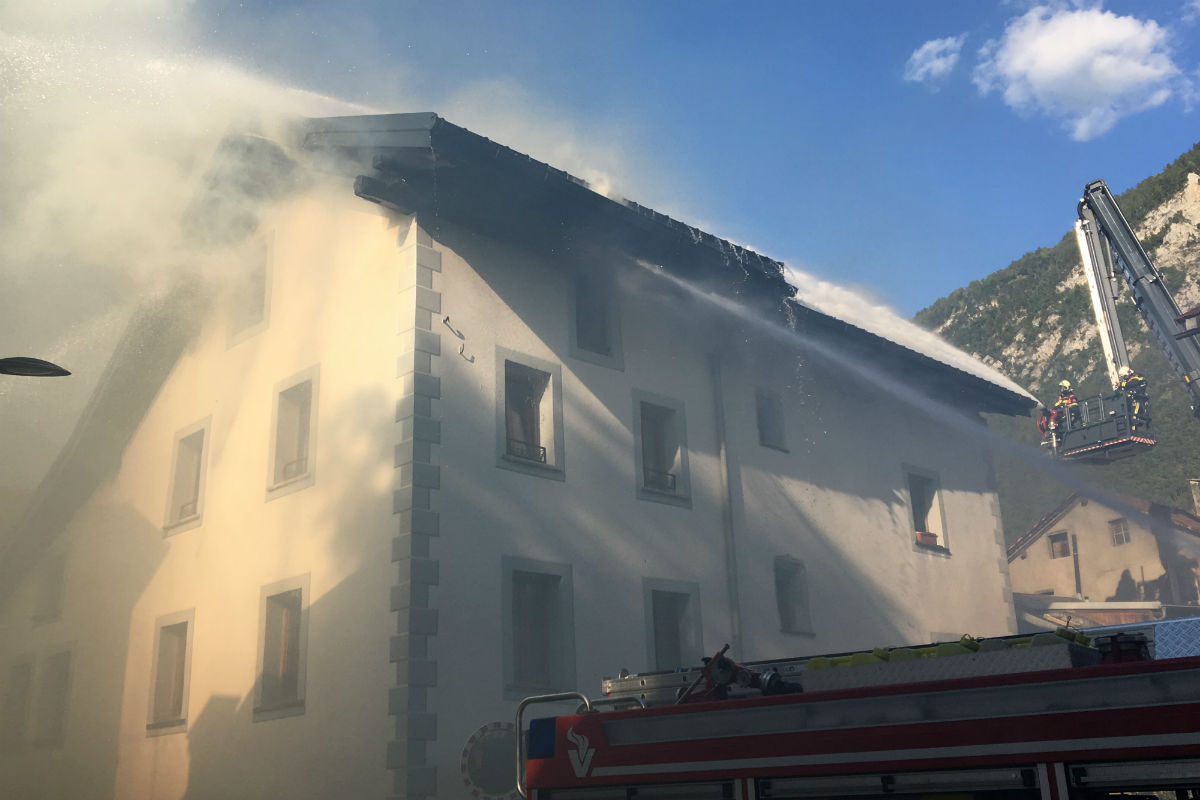 Das Feuer brach in den oberen Stockwerken des Wohnhauses im Dorfzentrum von Brämis aus. Aufgrund der starken Rauchentwicklung alarmierten Drittpersonen die Einsatzzentrale der Kantonspolizei, welche die entsprechenden Einsatzkräfte aufbot.