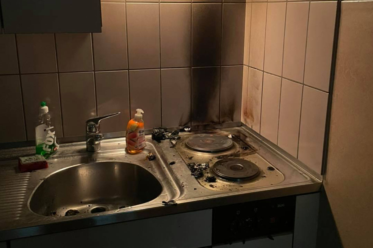 Wie sich herausstellte, kam es im 2. Obergeschoss des Bürogebäudes im Bereich eines eingeschaltenen Kochherds zum Brand.