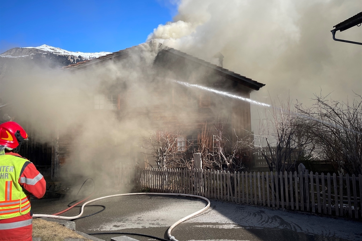 In Conters brannte ein Holzhaus. Dank schnellem Einsatz der Feuerwehr konnte Schlimmeres verhindert werden.