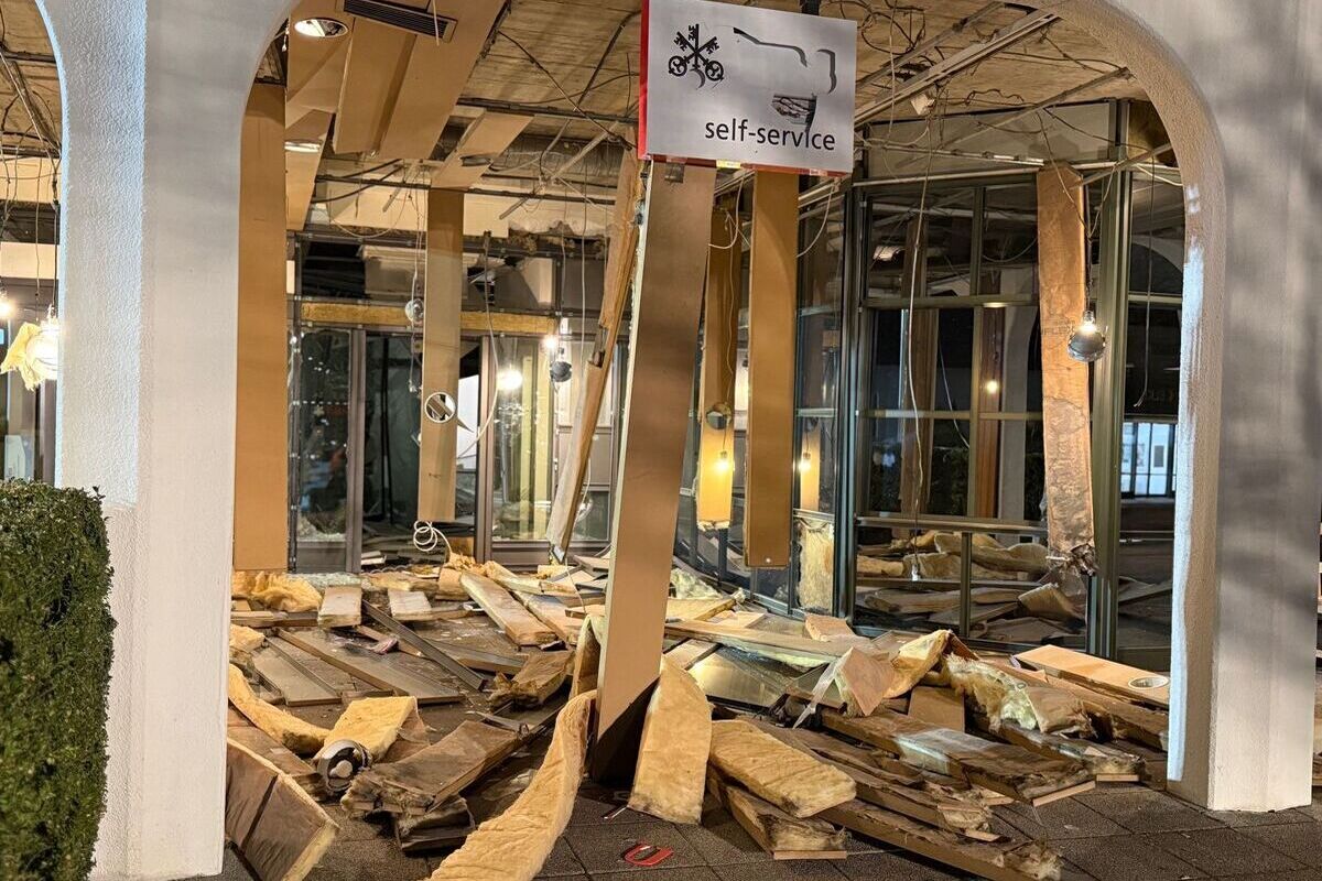 Dieser Bankomat sowie Teile des umliegenden Gebäudes wurden durch die Sprengung zerstört. Das genaue Schadenausmass lässt sich zurzeit nicht beziffern. Sicherheitshalber wurde der Gefahrenbereich sofort grossräumig abgesperrt. Verletzt wurde niemand.