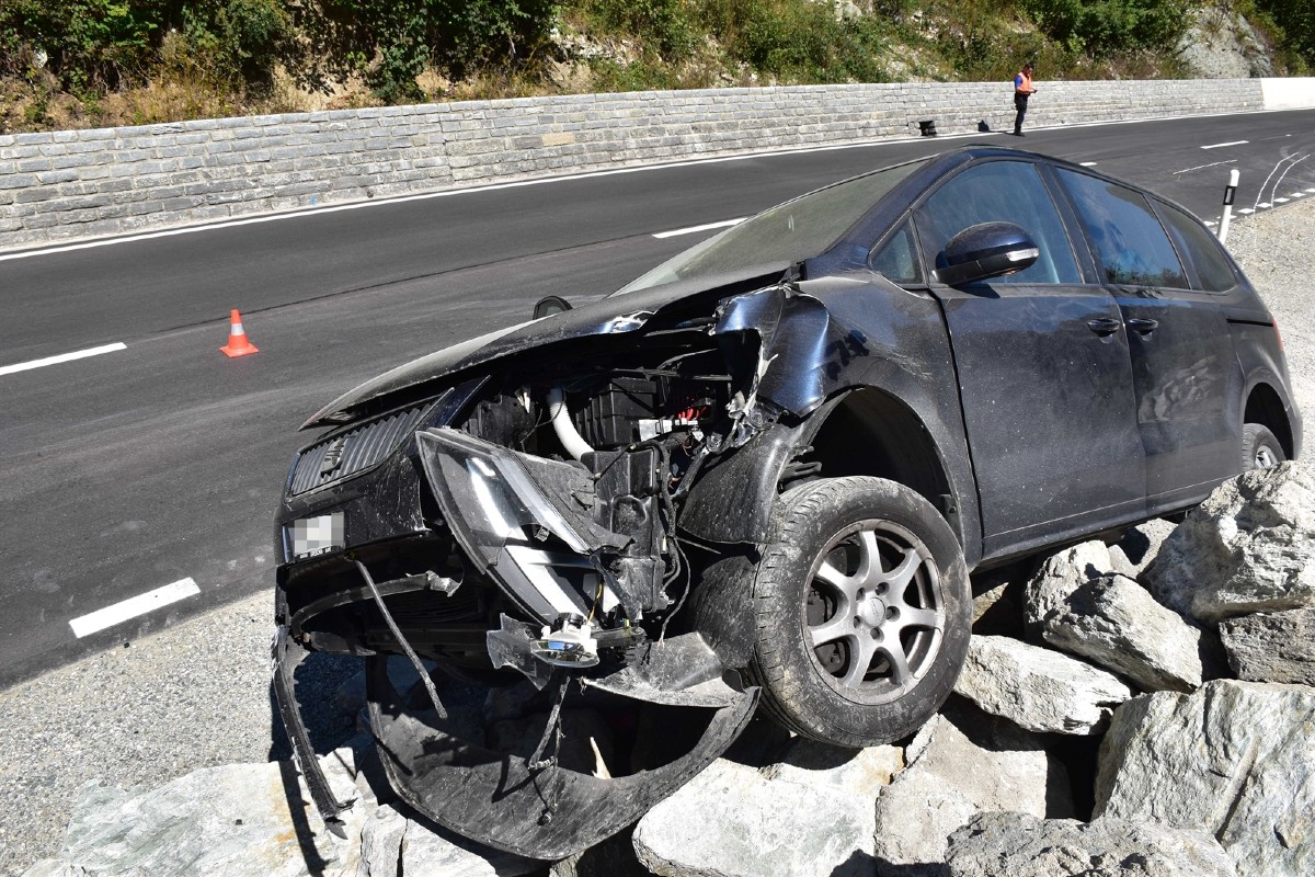 Beim Ausweichen nach links touchierte der Personenwagen seitlich den Dumper und kam auf einer Steinhaufen-Deponie zum Stillstand. Vom Rettungsdienst Surselva wurde die Frau zusammen mit ihrem unverletzten Kind ins Spital nach Ilanz überführt. Die Kantonspolizei Graubünden klärt die Unfallursache ab.