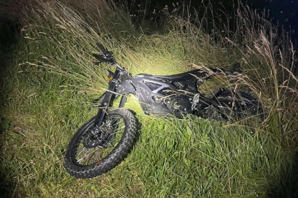 Die Flucht mit dem nicht-registrierten E-Motorrad endet im Feld. (Bildquelle: Kantonspolizei Fribourg)