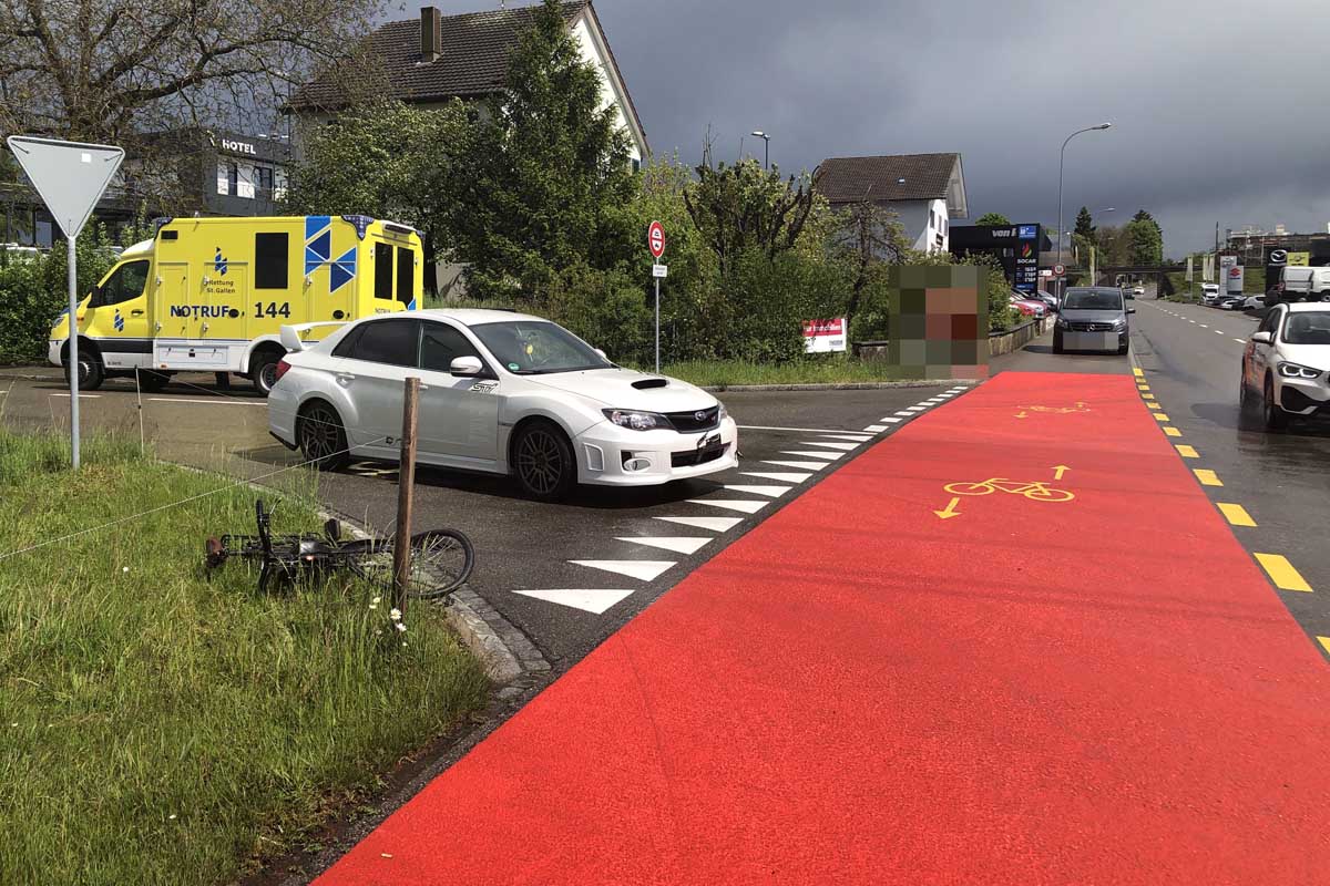 Am Montag (17.05.2021), kurz nach 14:30 Uhr, ist es auf der Zürcherstrasse zu einem Verkehrsunfall zwischen einem Auto und einem E-Bike gekommen. Der 69-jährige E-Bikefahrer wurde dabei leicht verletzt und durch den Rettungsdienst ins Spital gebracht.