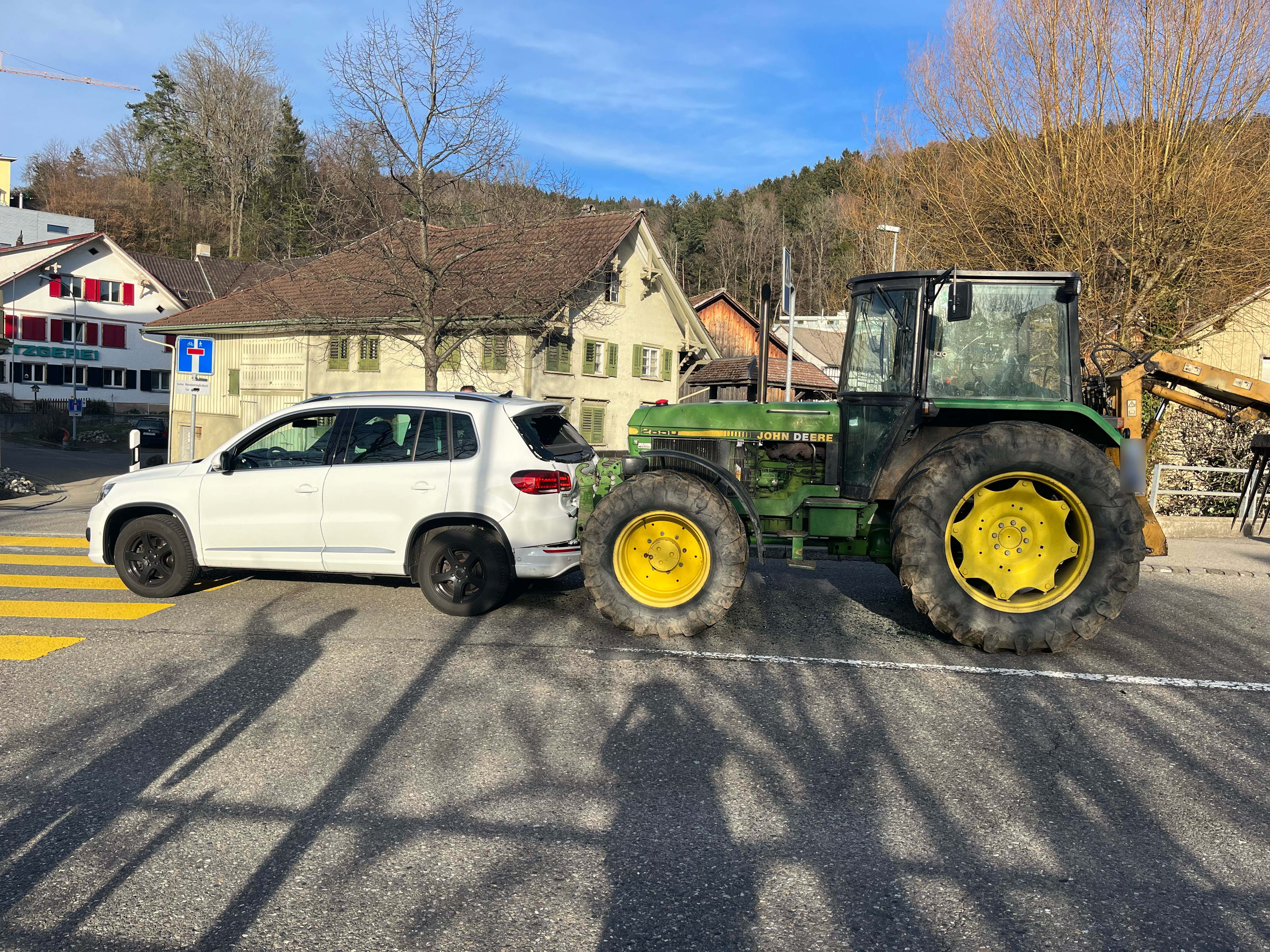 Am Donnerstag (16.03.2023), kurz vor 16:30 Uhr, hat sich auf der Hauptstrasse ein Auffahrunfall mit einem Traktor und einem Auto ereignet. Ein 43-jähriger Mitfahrer im Auto wurde dabei unbestimmt verletzt.