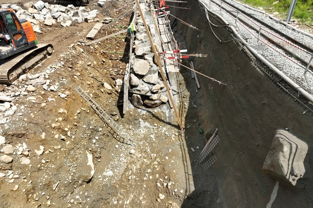 In Brusio stürzte am Montag ein Arbeiter von einer Steinmauer in die Tiefe. Er wurde dabei verletzt.